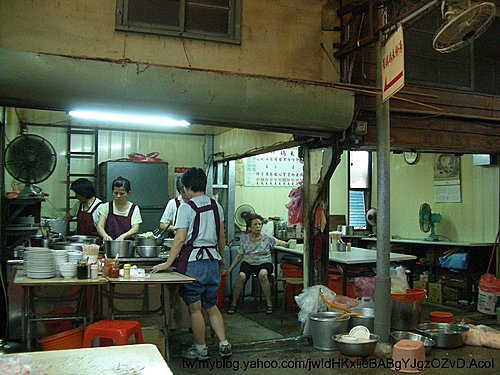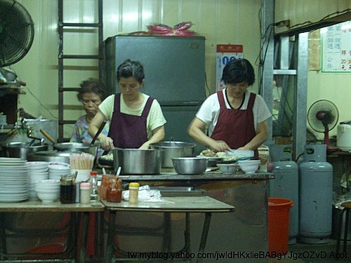 即使空檔,店裡的媽媽們也沒閒著,仍不斷的處理各式內臟、肉類,只為提供最佳美味(現在,就正在刮豬皮內層的油,可惜照不清楚....)