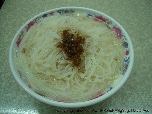 羅媽媽他家,有別於一般台式的米粉湯,用的是細米粉,而且一定要佐「蒜頭醬油」才對味!!這與常見的加胡椒粉或辣椒醬不同,當狗狗第一次帶我來吃的時候,看到他加蒜頭醬油,還蠻讓我意外的,這種應該是屬於比較外省口味的吃法吧,聽說傅培梅生前也很愛來這吃...