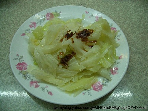 燙高麗菜,鮮脆可口,我喜歡再加一點蒜頭醬油,更顯甘甜美味。
